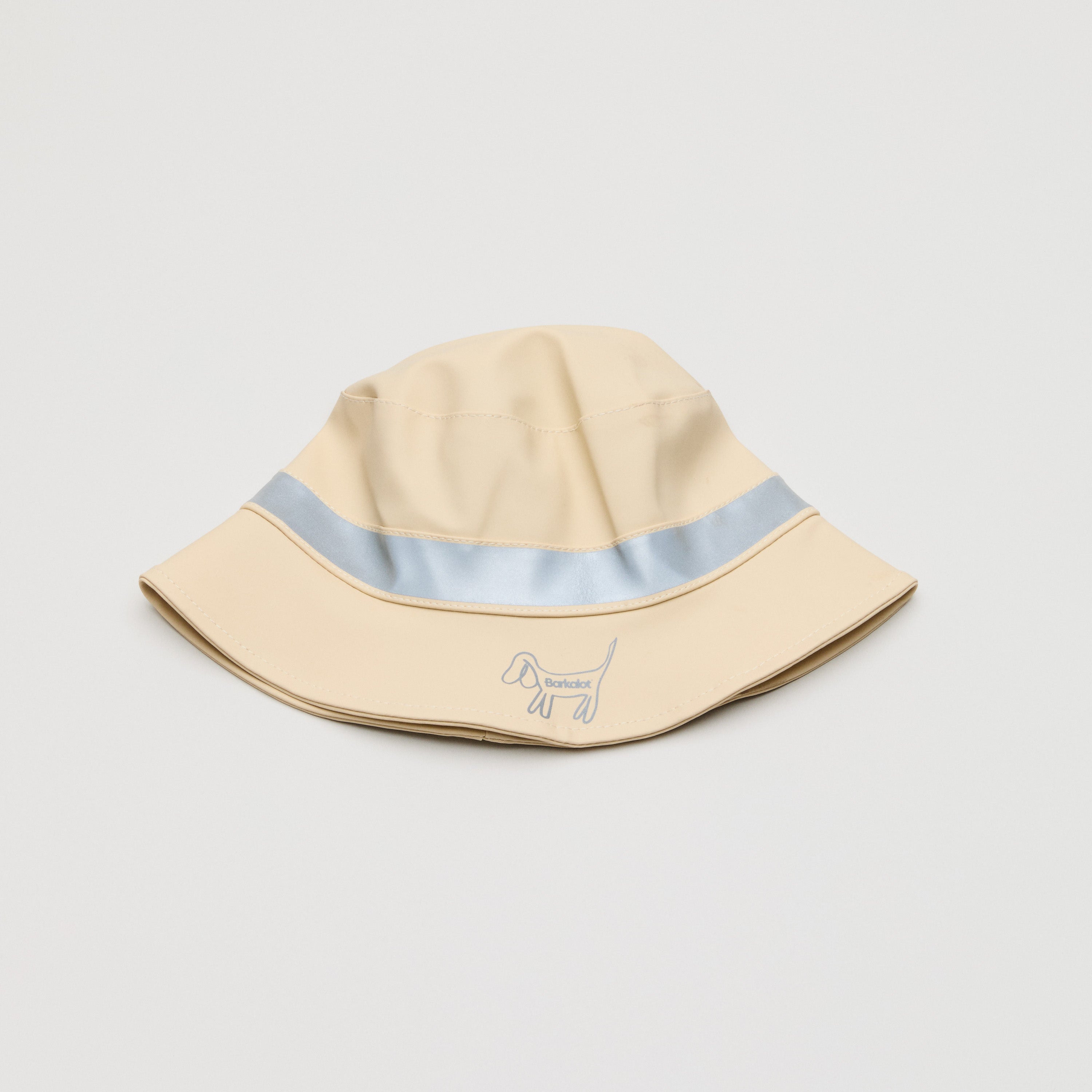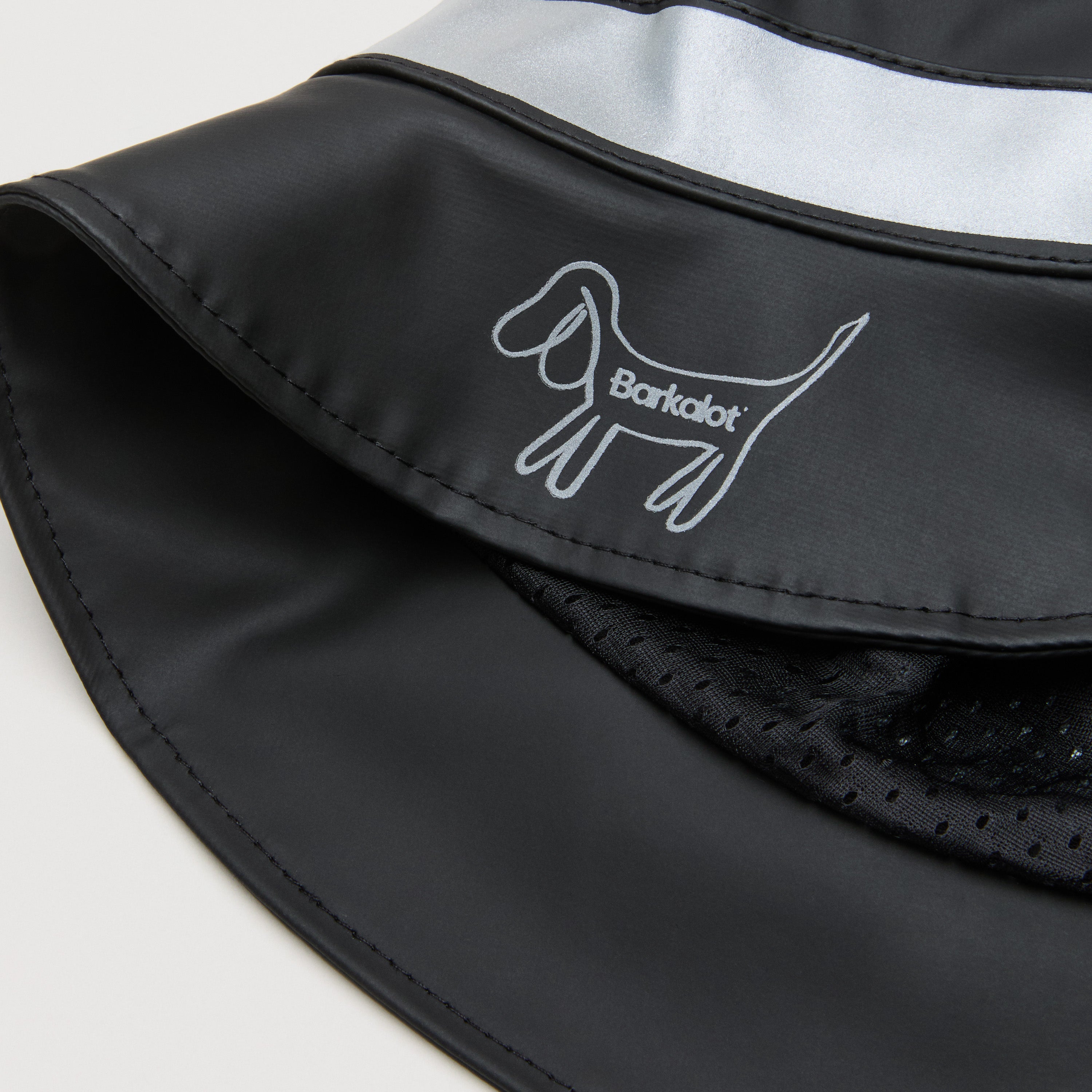 100% waterproof bucket hat for humans, made from upcycled PVC with reflective logo and tape. Made in Europe.