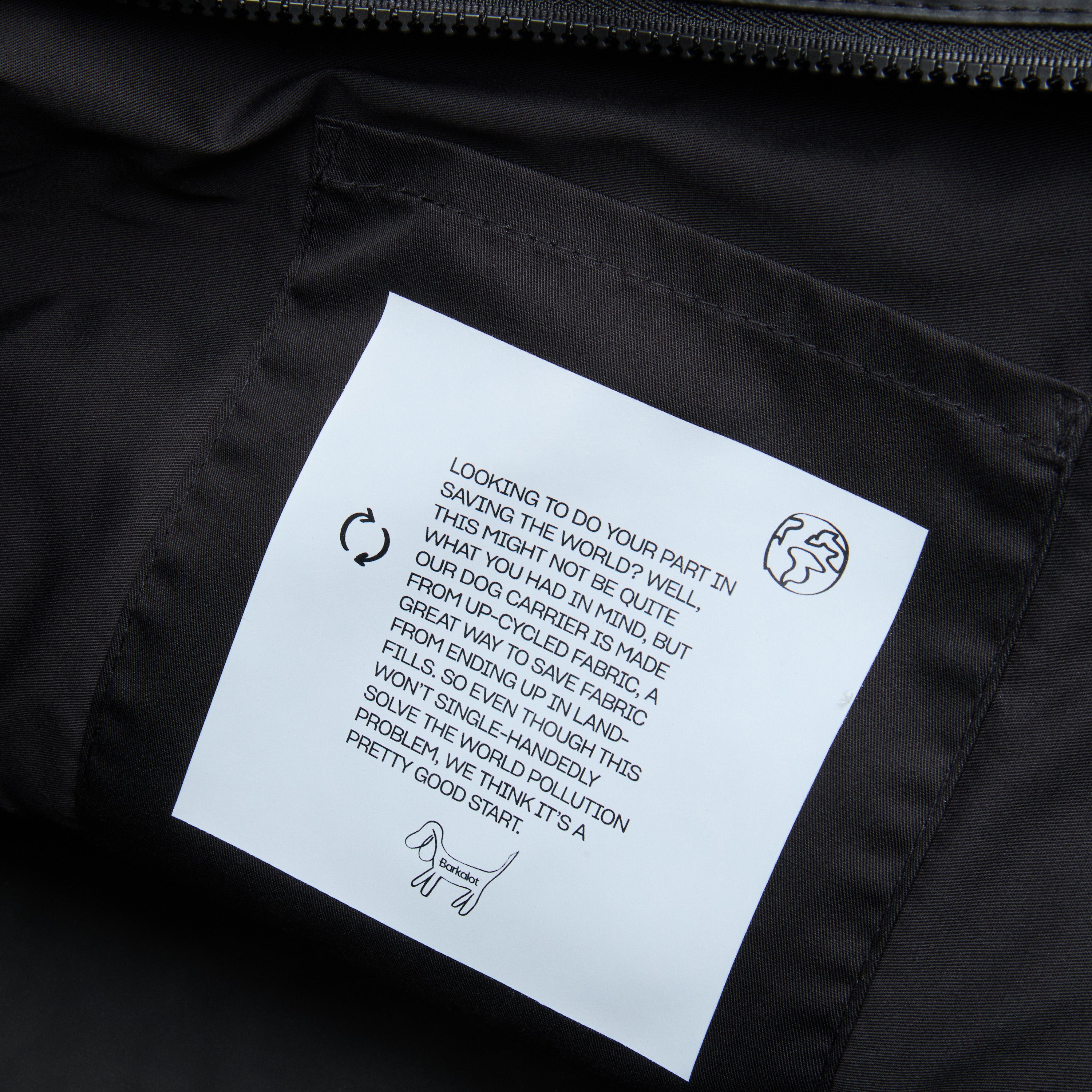 dog inside barkalot pvc upcycled carrier bagDETAILS