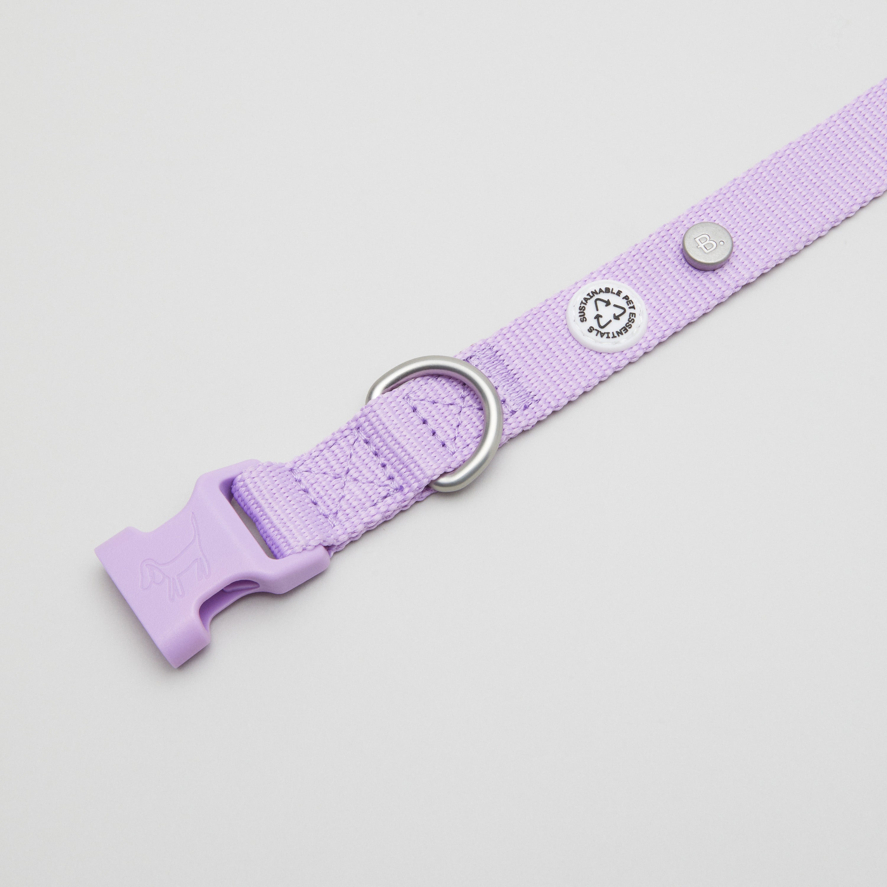 Our lilac dog collar is made in Europe from recycled polyester. The collar is easily adjustable to fit your dog perfectly and the lilac color will brighten up every walk!