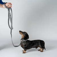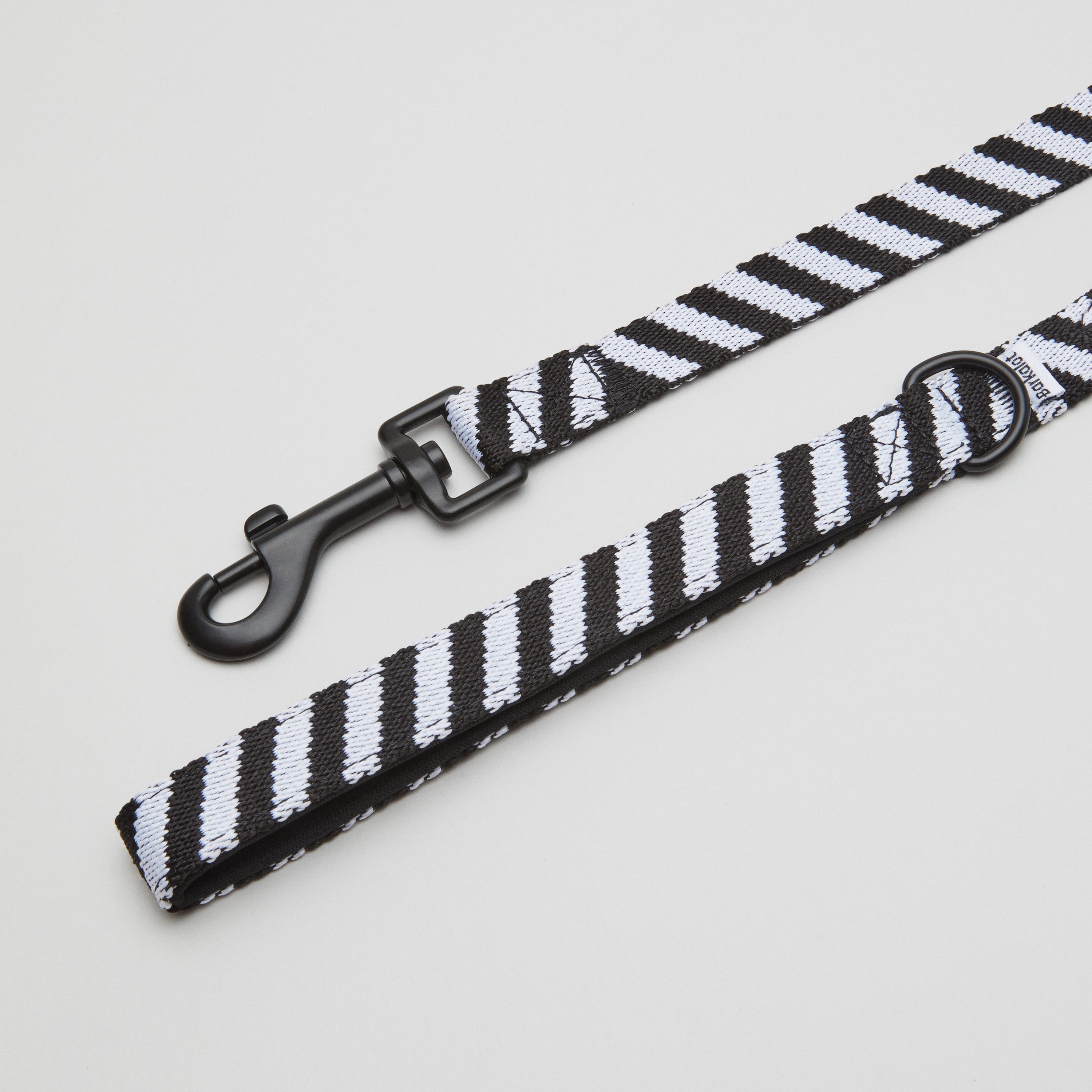 Our dog leash with classic black and white stripes is perfect for everyday walks. It is made in Europe from durable recycled polyester, features a padded handle for extra comfort and is an ideal length for every walk.