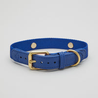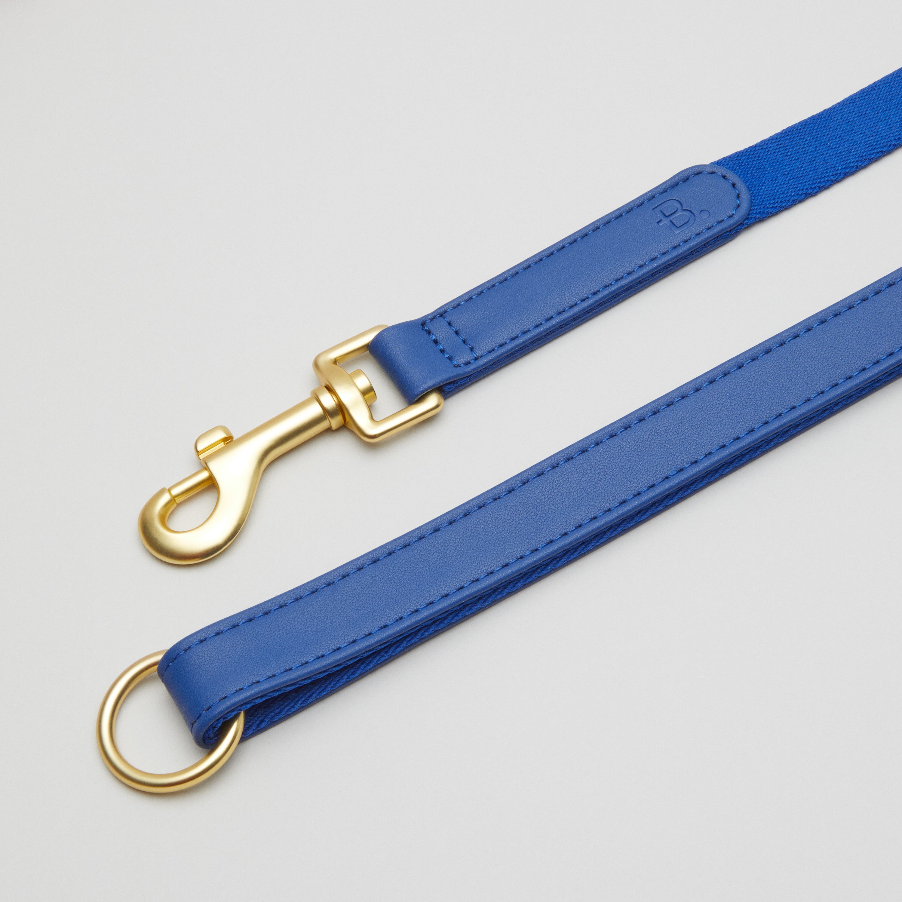 Looking for a stylish, vegan-friendly collar and leash set for your pup? Look no further! This chic bule collar and leash set includes a dog collar crafted from vegan leather and webbing made from recycled plastic bottles. The matching dog leash is also made from vegan leather and recycled polyester for a sustainable option that will stand up to daily walks and adventures. Plus, the hardware is finished in matte gold for a modern touch. Whether you're taking your furry friend on a leisurely stroll around the block or hitting the trails for an energetic hike, we got you covered.