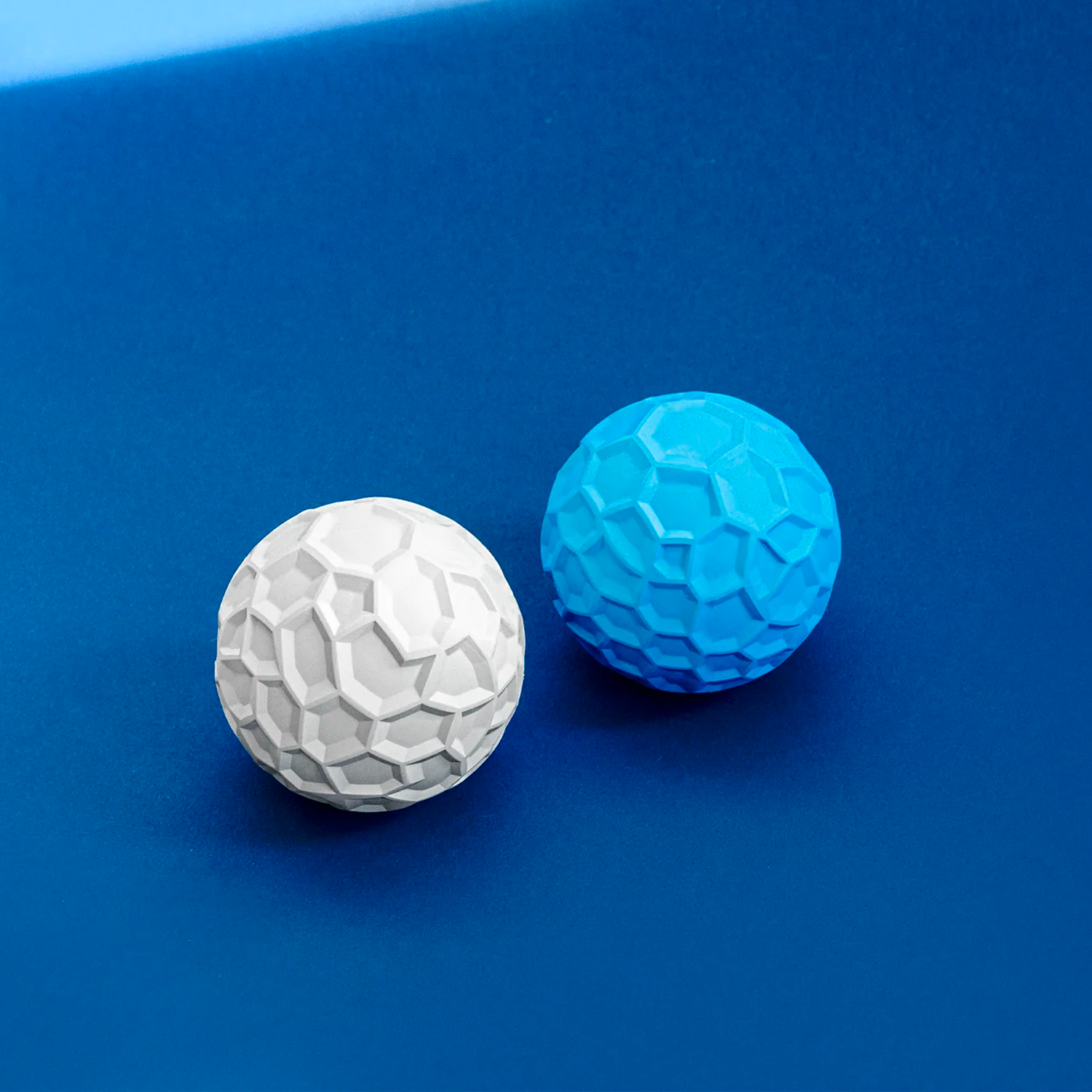 2-pack of natural rubber activity balls. Fill with treats to stimulate all senses – perfect for rainy-day mental workouts